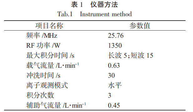 開啟電感耦合等離子體發(fā)射光譜儀,預熱 30min, 按下表設置各項儀器參數(shù)。見表 1。