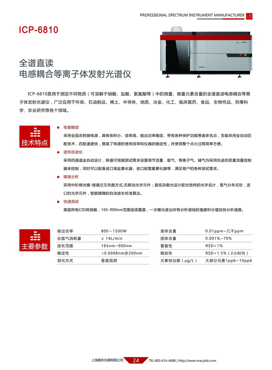 實驗開發(fā)建立采用濃縮法將地表水樣品進行濃 縮處理,電感耦合等離子體發(fā)射光譜法同時測定鋇、 鈷、鋁、鎳、鉬重金屬殘留的分析方法,對待測元素譜 線和儀器發(fā)射功率進行了優(yōu)化,考察了方法的線性 等,經實驗證實此方法具有簡單、快速等優(yōu)點,可以 用于地表水中重金屬殘留的檢測。