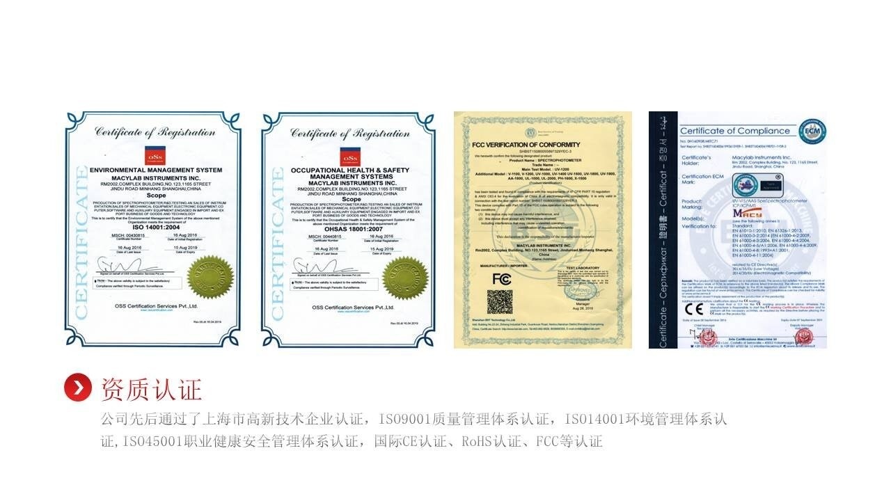 (Macylab instrument is not only a high-tech certification enterprise, but also through CE certification, FCC certification, RoHS certification and a number of domestic qualification examination and certification, and has a number of self-developed spectral patent copyright, etc.)