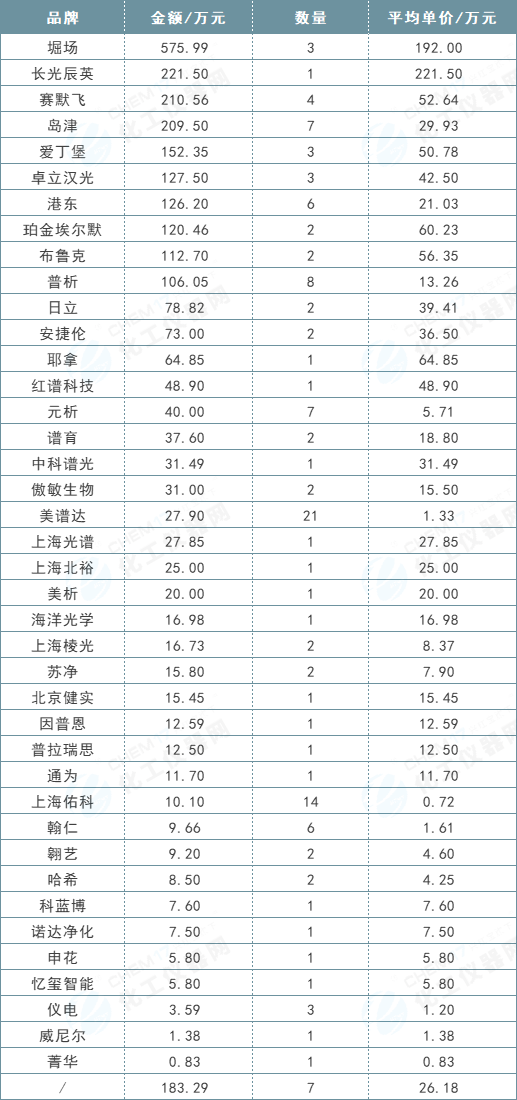 從光譜儀的中標品牌來看