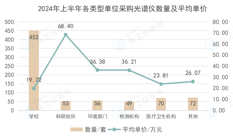 2024年上半年各類型單位采購光譜儀數(shù)量及平均單價