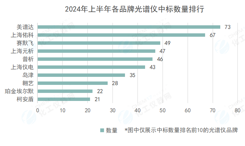2024年上半年各品牌光譜儀中標(biāo)數(shù)量排行