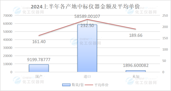 從“各產(chǎn)地中標(biāo)儀器數(shù)量及平均單價(jià)”來(lái)看,2024上半年國(guó)產(chǎn)質(zhì)譜儀的中標(biāo)數(shù)量為57套,平均中標(biāo)金額為161.40萬(wàn)元/套;進(jìn)口質(zhì)譜儀的中標(biāo)數(shù)量為252套,約占2024上半年質(zhì)譜儀中標(biāo)總數(shù)量的79.00%,平均中標(biāo)金額為232.50萬(wàn)元/套,約是國(guó)產(chǎn)質(zhì)譜儀平均中標(biāo)單價(jià)的1.4倍。