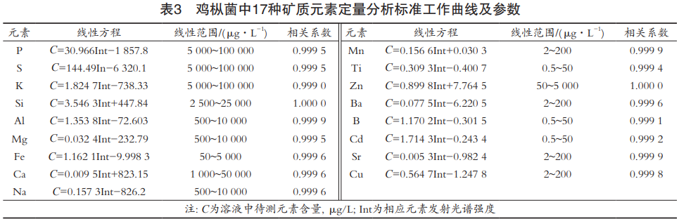 ICP-OES法定性定量分析野生雞樅菌中的礦質(zhì)元素組成