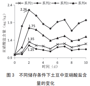 2.3 不同儲存溫度對亞硝酸鹽含量的影響