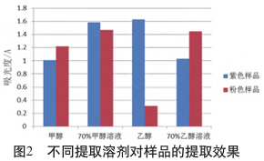 圖1 7種提取溶劑對粉色樣品的試驗結果