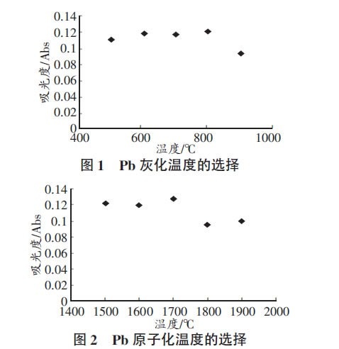 由圖1、圖2可知,Pb的最佳灰化溫度和原子化 溫度分別為800、1700。