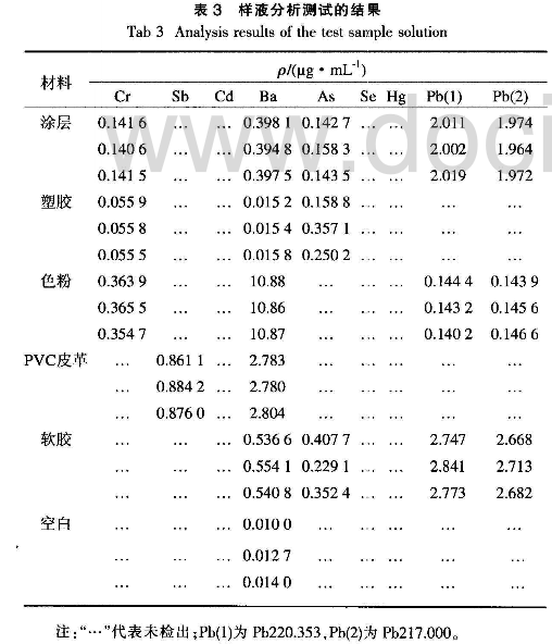 本研究對(duì)電感耦合等離子體發(fā)射光譜儀(ICP-AES)在玩具中有害重金屬進(jìn)行了分析測(cè)試應(yīng)用。ICP光源激發(fā)溫度高,譜線比較豐富,可選擇的譜線范圍大;另外,ICP是單、多元素同時(shí)進(jìn)行掃描測(cè)定,故分析速度快。建立一套使用ICP-AES快速準(zhǔn)確地進(jìn)行玩具中有害重金屬元素分析測(cè)試方法有著重要的意義。