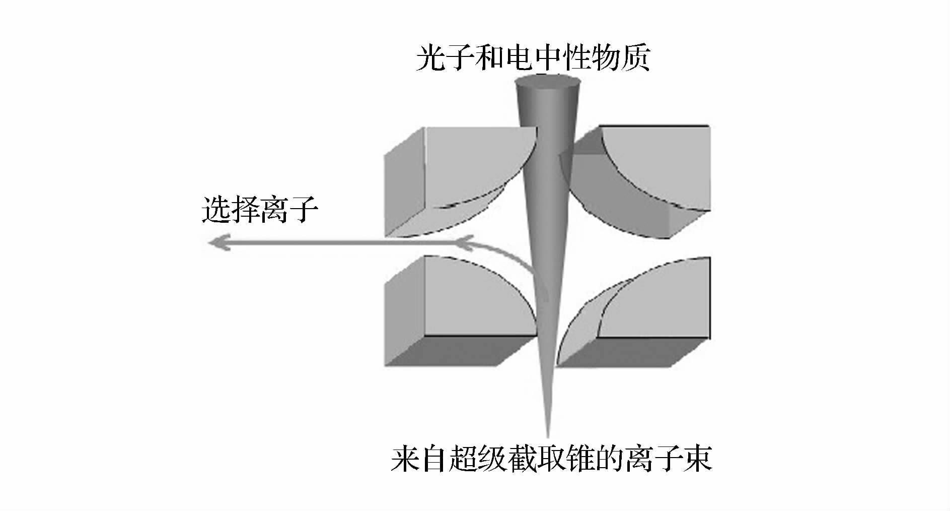 四級桿分析器是由四個平行的導(dǎo)電棒組成的質(zhì)量過濾器,如圖6所示,只有滿足質(zhì)荷比要求的目標(biāo)離子才能在任意時刻通過質(zhì)譜儀,不符合要求的較大離子或較小離子均會被四級桿過濾掉。四級桿分析器不需要日常維護(hù)。