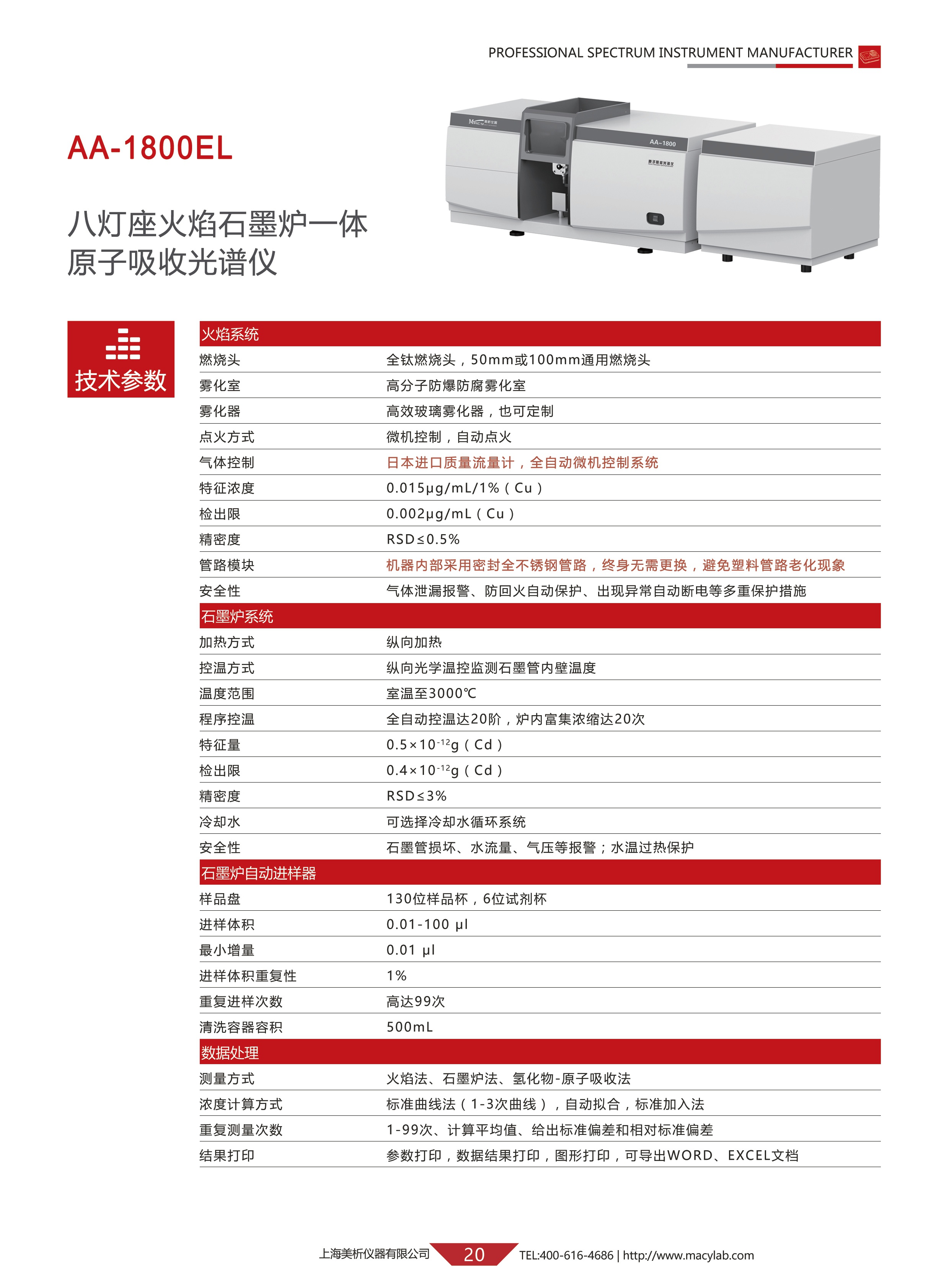 其中,原子吸收光譜儀采用上海美析儀器的AA-1800EL,可以完美測試各類原子吸收樣品,達到實驗室研學研究目標!