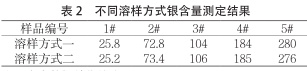采用方式一溶解樣品,試液底部有少量沉淀物;采用方式二溶解樣品,試液清亮。對(duì)以上兩種方式溶解得到的試液中的銀含量進(jìn)行測(cè)定,測(cè)定結(jié)果如表2所示。