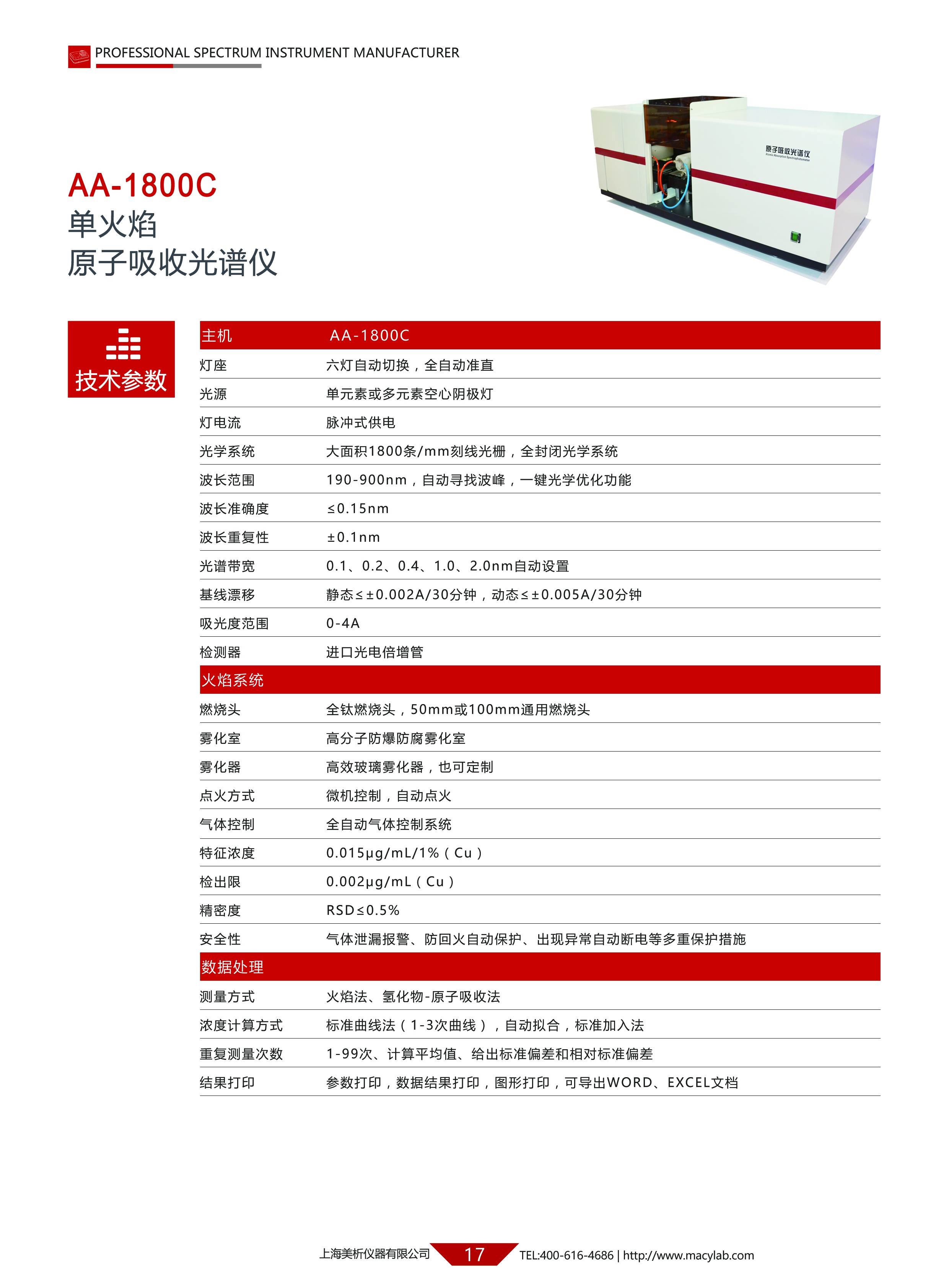 原子吸收分光光度計AA-1800C,金空心陰極燈,乙炔(純 度達 99.99 %),空氣壓縮機應(yīng)具備除水,除油,除塵裝備。