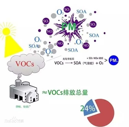 大多數(shù)VOCs有毒,部分VOCs有致癌性;如大氣中的某些苯、多環(huán)芳烴、芳香胺、樹脂化合物、醛和亞硝胺等有害物質對機體有致癌作用或者產(chǎn)生真性瘤作用;某些芳香胺、醛、鹵代烷烴及其衍生物、氯乙烯等有誘變作用。多數(shù)揮發(fā)性有機物易燃易爆、不安全。揮發(fā)性有機物在陽光照射下,與大氣中的氮氧化合物、碳氫化合物與氧化劑發(fā)生光化學反應,生成光化學煙霧,危害人體健康和作物生長;光化學煙霧的主要成分是臭氧、過氧乙酰硝酸酯(PAN)、醛類及酮類等。它們刺激人們的眼睛和呼吸系統(tǒng)。危害人們的身體健康且危害作物的生長。