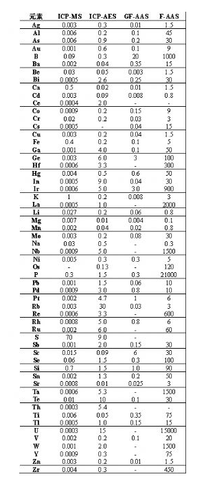 ICP-MS6880的檢出限給人極深刻的印象,其溶液的檢出限大部份為ppt級(jí),石墨爐AAS的檢出限為亞ppb級(jí)